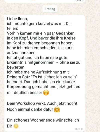 Der Kurs war derart gut, dass ich bereits nach einer Woche wusste: Ich will weitermachen. Tiefer gehen. Hier wird das Wachstum möglich, nach dem ich mich schon so lange sehne – und das jetzt einfach dran ist.