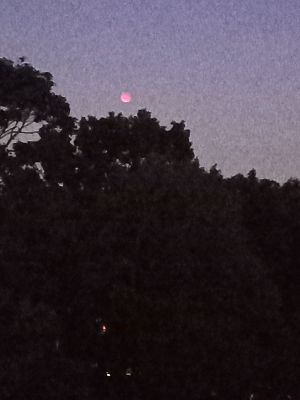 Logisch, dass ich die sichtbare Mondfinsternis live beobachtet habe. Logisch auch, dass ich nicht dran gedacht habe, dass das Denkmal am höchsten Punkt im Kreuzbergpark zwar eine schöne Aussicht über die Stadt bietet; der Mond aber nicht unbedingt an der Stelle mit der freien Sicht aufgeht. Sprich: es hat lange gedauert, bis wir ihn sehen konnten und er kam dann recht unspektakulär daher. Aber: Dabeisein ist alles, und an der Intensität der Energie gab und gibt es für mich nicht den geringsten Zweifel.