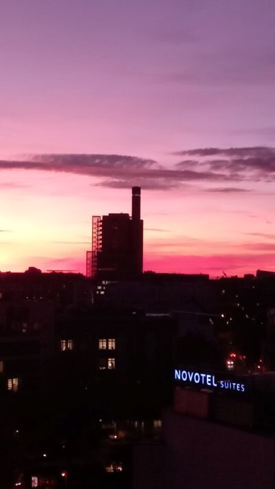 Der Blick aus meinem Fenster über die Stadt gehört zu dem, was ich an meiner Wohnung am meisten liebe. Im Herbst und Winter scheint mir das Licht noch einmal besonders schön zu sein. Der Himmel flammt manchmal richtig auf. Dieses Bild hier ist unbearbeitet.
