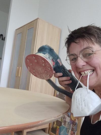 Dafür, dass ich Steinbock bin, habe ich sehr wenig Bezug zu handwerklichen Tätigkeiten. Das Handwerk läge ja den Erdzeichen Stier, Jungfrau und Steinbock im Blut, heißt es. Im Oktober wollte ich es wissen und habe mir ein für eine Laiin anspruchsvolles Projekt ausgesucht: Das Abschleifen meines schönen Kirschholztisches. Du willst nicht wissen, wieviel Tode ich im Bauhaus gestorben bin, als es um die Wahl des richtigen Schleifpapiers ging. Du willst auch nicht wissen, dass ich auf die harte Tour gelernt habe, warum man solche Dinge nicht IN DER WOHUNG macht.